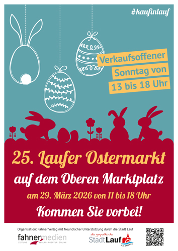 Längst schon liebgewonnene Tradition ist der Ostermarkt auf dem Oberen Marktplatz in Lauf an der Pegnitz, der seinen Ursprung im Jahr 2001 hat und der seit März 2024 vom Fahner Verlag mit freundlicher Unterstützung der Stadt Lauf organisiert wird.